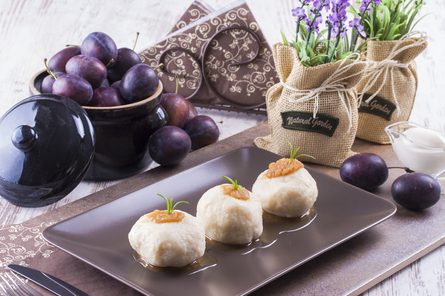 Ziemniaki, mąka, 1 jajko, sól, dojrzałe, słodkie śliwki, cukier lub ksylitol, cynamon