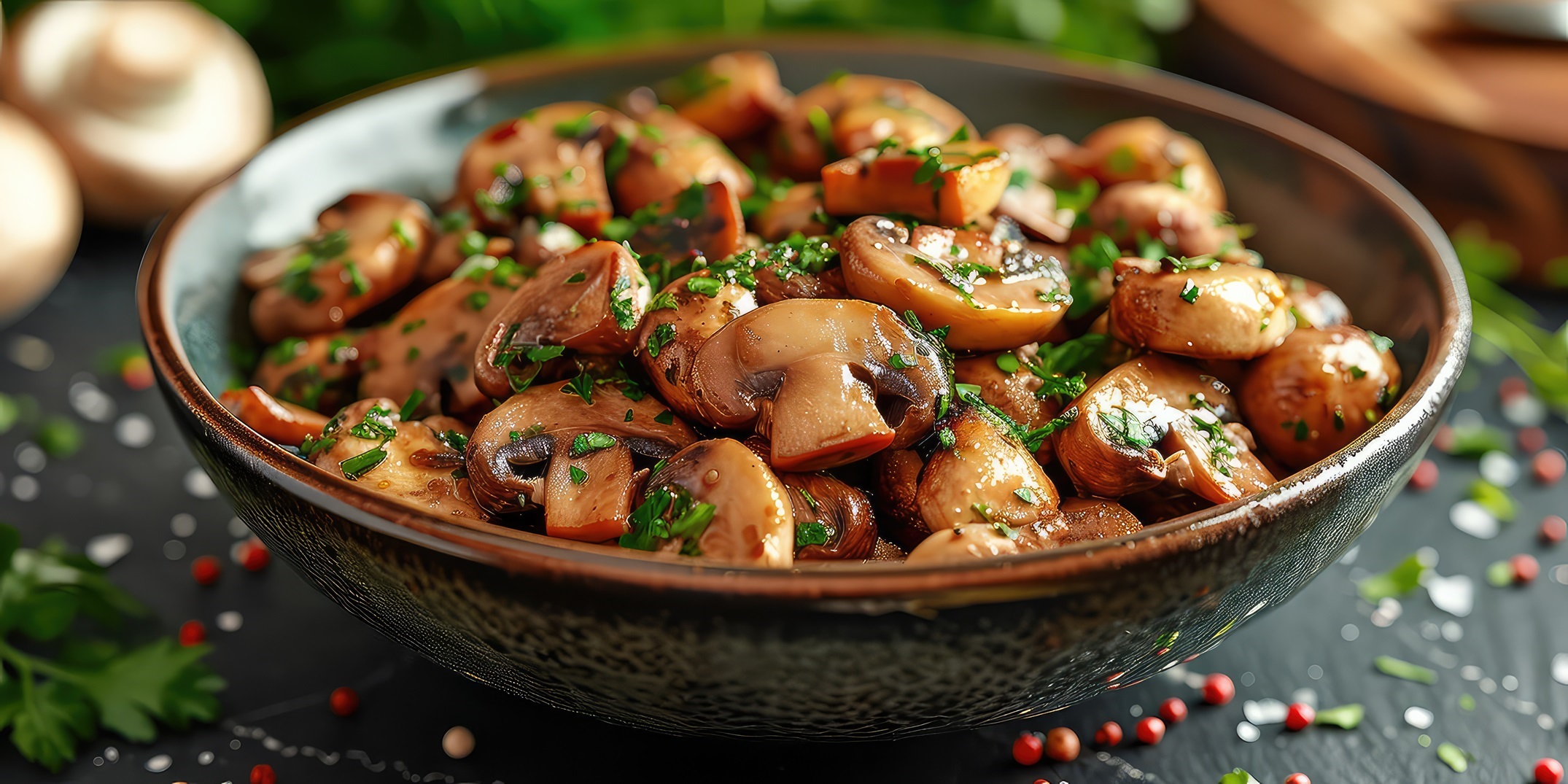 Proste, a zarazem niezwykle smakowite – smażone pieczarki z dodatkiem aromatycznego czosnku i świeżej pietruszki. Wystarczy pokroić pieczarki na plastry, smażyć na złoty kolor, a na koniec dodać czosnek i pietruszkę. Świetnie sprawdzą się jako dodatek do mięs lub jako samodzielna przekąska podawana z kawałkami chrupiącego pieczywa.